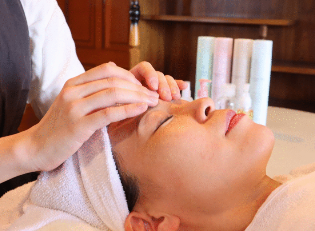 顔やデコルテ(首〜胸元)を優しくマッサージすることで、血流やリンパの流れが促進され、心身のリラックスにつながります。